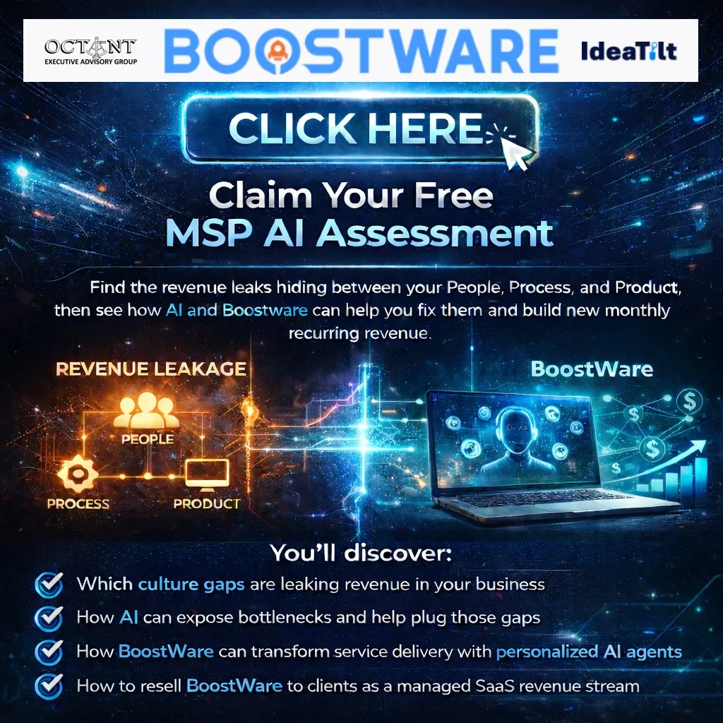 AI is not the opportunity. Clarity is. This assessment helps MSPs expose the hidden revenue leakage living between their people, process, and product, then shows them where AI can make the biggest difference first. From operational efficiency to smarter service delivery to a new recurring revenue stream through reselling Boostware as a managed SaaS offering, this is about more than adopting AI. It is about turning invisible gaps into measurable growth.