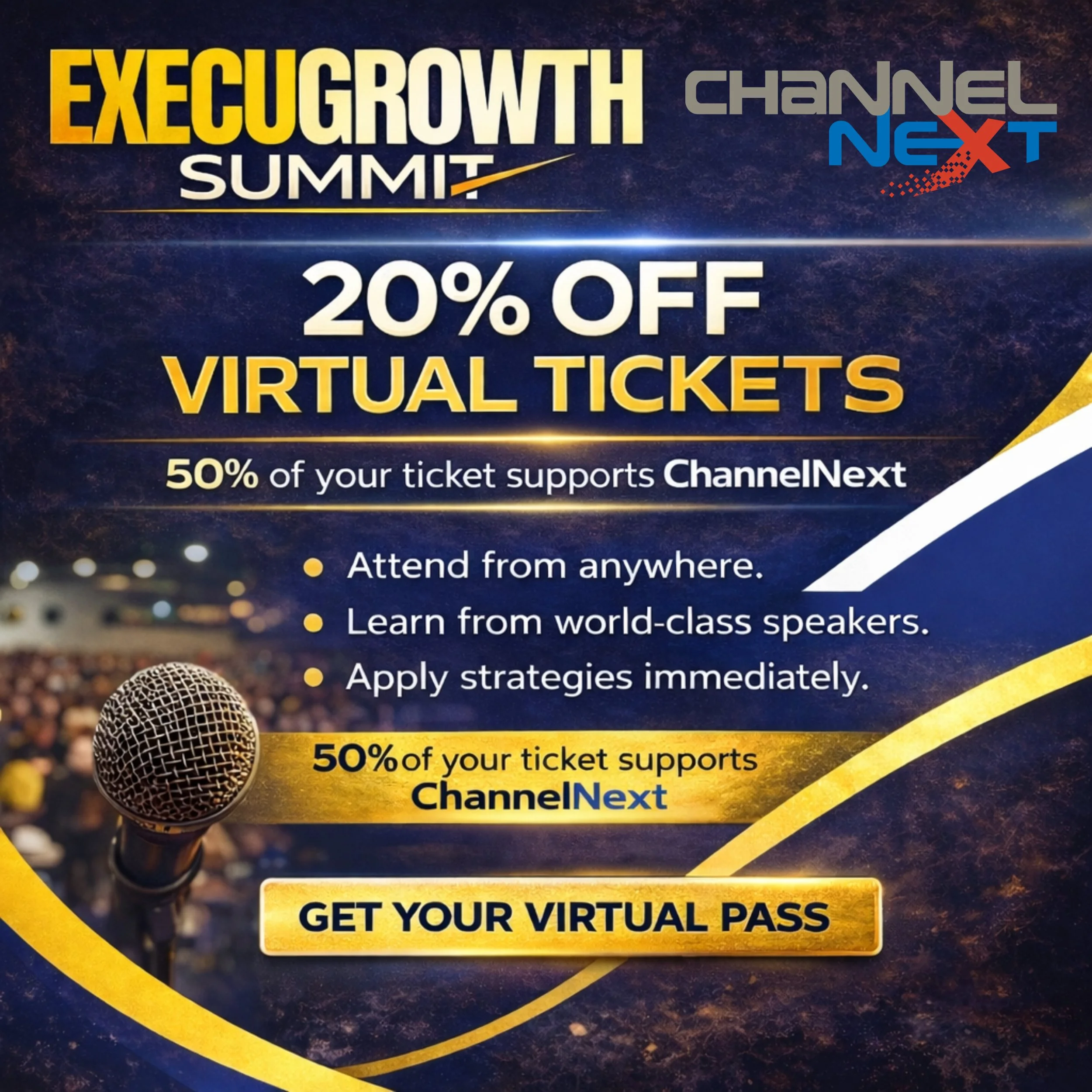 The virtual pass gives you direct access to the conversations, frameworks, and insights that are shaping how modern leaders connect culture to revenue. From actionable strategies to real-world experiences, this is where clarity replaces noise and intention replaces guesswork. And with 50% of proceeds supporting ChannelNext, your investment goes beyond your own growth. It contributes to a broader ecosystem of leaders building smarter, stronger businesses together.