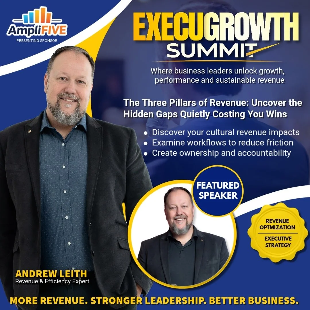 In this session, Andrew Leith explores the hidden dynamics between the 3 P’s (People, Process & Product) that influence performance, shape customer experience, and determine whether revenue flows or leaks. When leaders do not understand how these pillars interact, they often respond by pushing harder and creating burnout instead of solving the real problem. This session helps leaders understand the how, the why, and the what behind identifying and plugging unseen revenue gaps so they can grow in a healthier, more sustainable way.
